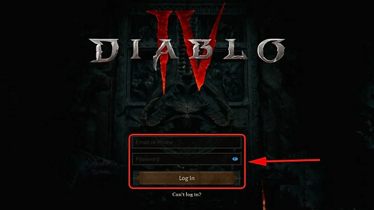 Включите приложение Diablo 4 и увидите окно для ввода данных. Вбейте логин и пароль от российского аккаунта, где куплена игра.