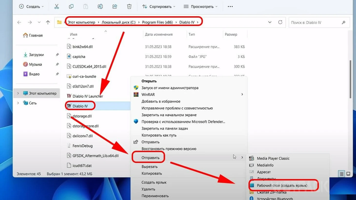 Когда загрузка завершится, откройте папку с игрой и отправьте ярлык Diablo 4 на рабочий стол.