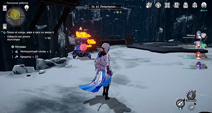 Купите 12 уровень интерьера зала и завершите день. Начнется миссия «Копирование экспонатов: легион антиматерии 1», в которой нужно получить экспонат «Ледяная скульптура Рейнджера пустоты 1». Отправляйтесь в пригородные снежные поля и сделайте фото.