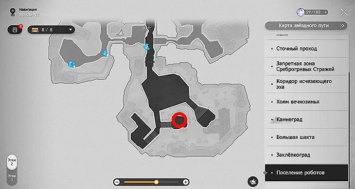 За А-уровень дается меньше кредитов, зато откроется квест на поиск нового экспоната – центра энергоснабжения механизмов. Перейдите в локацию Поселение роботов и идите в место, отмеченное желтым – мимо этой бандуры пройти невозможно.