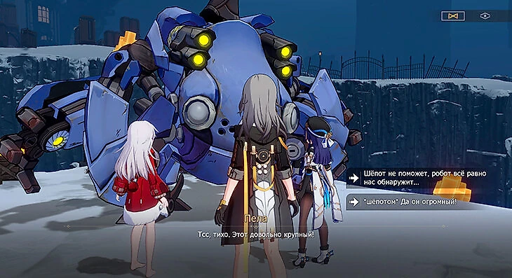 Потом Пела все-таки решит, что фармить 50 деталей крайне долго, поэтому надо уничтожить одного большого вместо множества мелких. Осторожно, когда вы подойдете к здоровяку, слева в засаде сидит маленький патрульный.