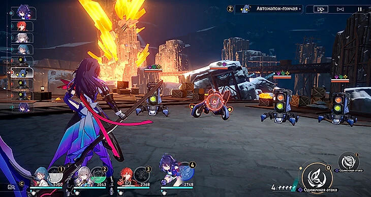Нужно победить отряд из 4 роботов с уязвимостью к электрическому, ветряному, физическому и мнимому урону.