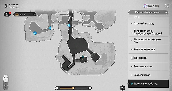 Отправляйтесь и дальше фармить детали на роботах. Первый в нижней части локации.