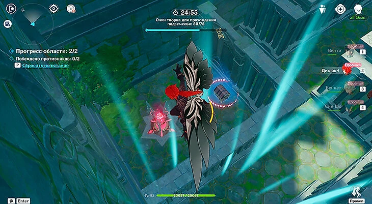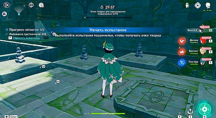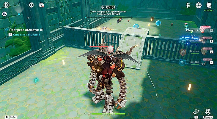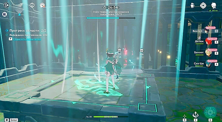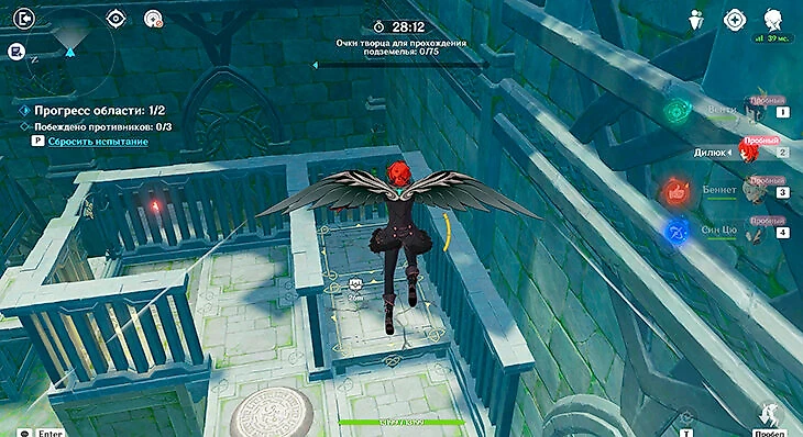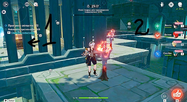 На следующей арене убейте Анемо слаймов и взлетайте на платформе.
