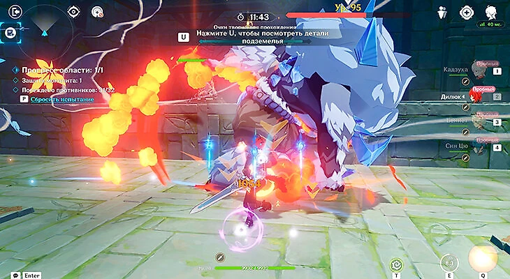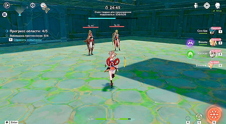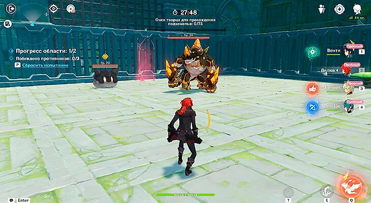 Поскольку в качестве пробных персонажей можно взять любых героев, берите Пиро дамагера против врагов Крио стихии, стяжку и двух саб-дд/саппортов Гидро, Электро или Дендро. Примеры отрядов: