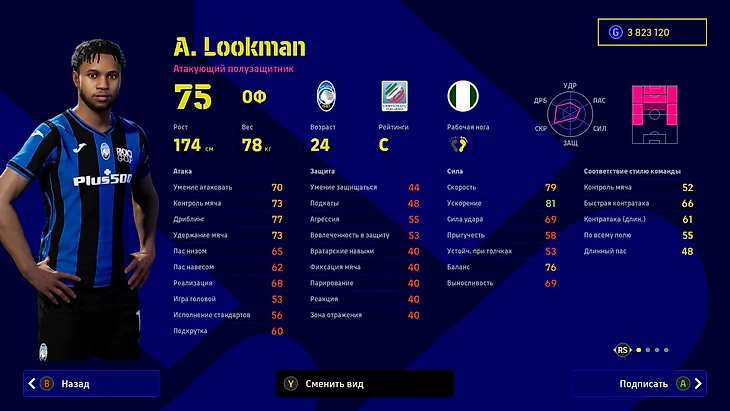 Адемола Лукман провалил последние сезоны в Англии, но Konami верит в нигерийца. Вингер доступен на шести позициях и сыграет даже флангового полузащитника, а в максимальной прокачке получит хорошие показатели скорости, дриблинга и точности ударов. Единственный минус Лукмана – стиль «атакующий полузащитник», который не работает в нападении.