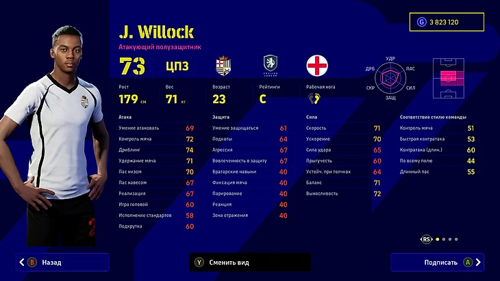 Сейчас в eFootball действует правило пяти замен, поэтому мы добавили в подборку полузащитников. Джо Уиллок – универсальный игрок на две позиции со сбалансированными характеристиками, он подменит во втором тайме одного из ваших центральных хавбеков.
