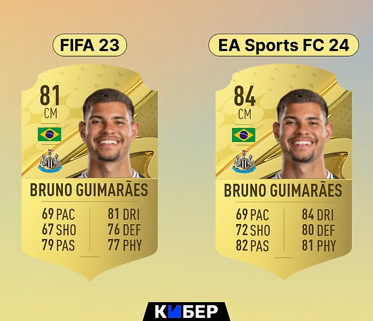 «Ньюкасл» вернулся в элиту английского футбола, а Бруно Гимараэс – важнейший винтик команды Эдди Хау. Опорный хавбек с отличными навыками плеймейкера за год подорожал на 30 млн евро, и получит серьезный апгрейд в EA Sports FC 24.