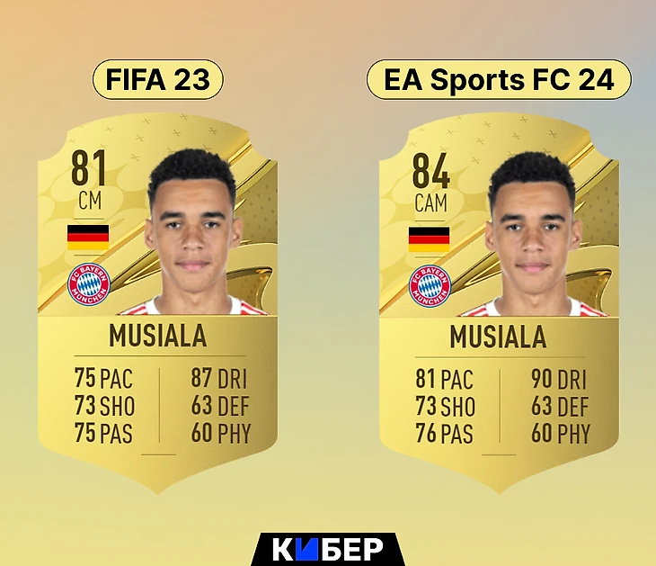 Молодой талант «Баварии» Джамал Мусиала провел первый сезон на топ-уровне. Техничный полузащитник сделал 32 результативных действия в 47 матчах сезона и повысил трансферную стоимость до космических 110 млн евро. В новом футсиме EA Мусиала получит солидную карточку.