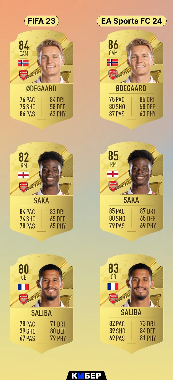 «Арсенал» лидировал большую часть сезона в АПЛ и изменил статус клуба. Микель Артета построил доминирующую игру в пас, о которой долго мечтал, а молодые таланты «канониров» сильно прибавили. Апгрейд получит почти весь состав лондонцев, а самые заметные улучшения затронут Мартина Эдегора, Букайо Сака и Вильяма Салиба.