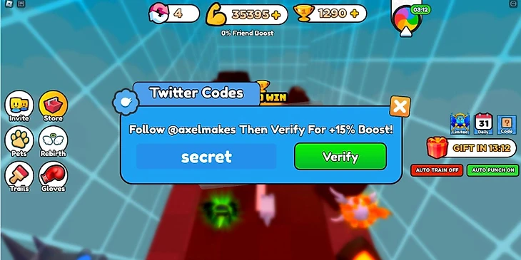Процесс активации кодов Punch Wall Simulator не отличается от других подобных проектов: