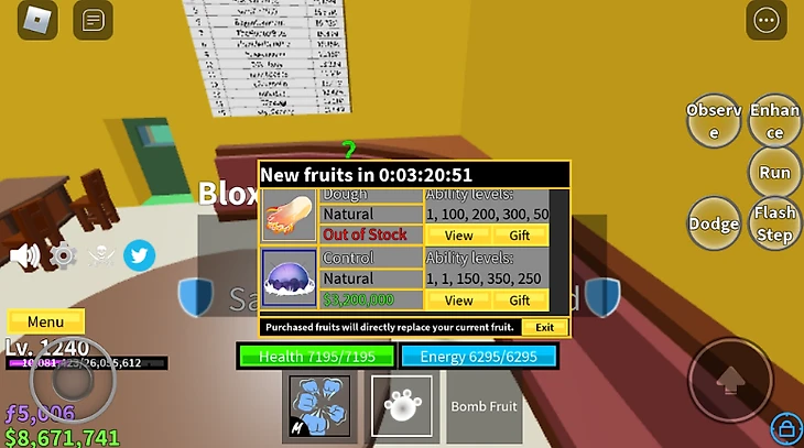 Учитывайте, что при покупке плода за Beli ($), есть несущественные ограничения. У продавца в ассортименте можно найти до трех фруктов. Магазин обновляется каждые 4 часа. Такие предметы имеют ограниченное время действия усиления. Если хотите приобрести фрукты за R$, то ассортимент не урезается и в любое время можете купить что хотите.