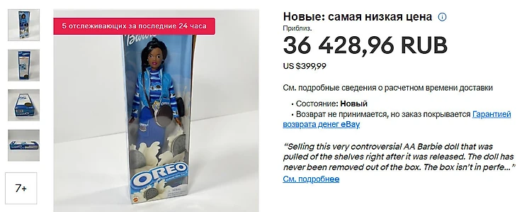 Ее сняли с продажи и отозвали запасы из магазинов, поэтому теперь она стала частью редких коллекционных Барби, за которых платят большие деньги. Обычную версию можно купить примерно за 15 долларов (1350 рублей), а за нее просят $400 (~36 000 рублей).