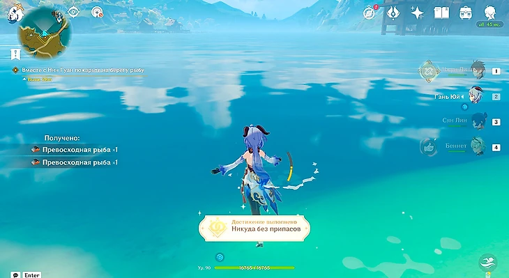 Но если ослушаться ее и поймать еще 4 рыбы, откроется достижение «Никуда без припасов». Нин Гуан очень тепло относится к Путешественнику, поэтому расстраивать ее не хочется. Но чего не сделаешь ради ачивки!