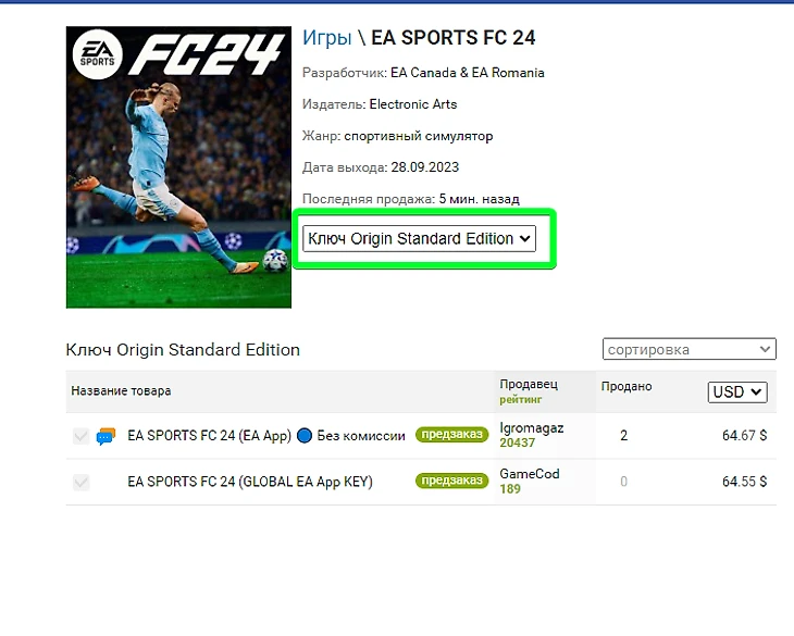Такие объявления доступны, например, на Plati.market. Стоимость EA Sports FC 24 на ПК у посредников колеблется около 5 000 рублей.