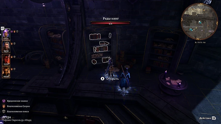 На первом этаже находится Библиотека безмолвия. В ней вы встретите много врагов и сгусток в центре комнаты. Сначала уничтожьте сгусток, ведь он накладывает на героев эффект «Немота».