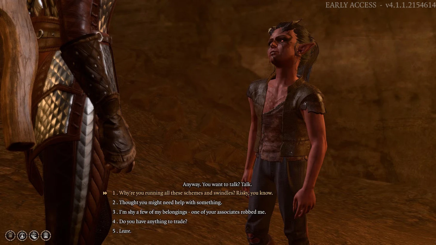 Спустя долгое время возвращайтесь к Дони и поинтересуйтесь, куда он исчез – это вызовет проверку Мудрости. Успех приведет к появлению диалога «Убеждение», а успешная проверка Харизмы позволит пройти через скрытый люк и попасть в убежище тифлингов.