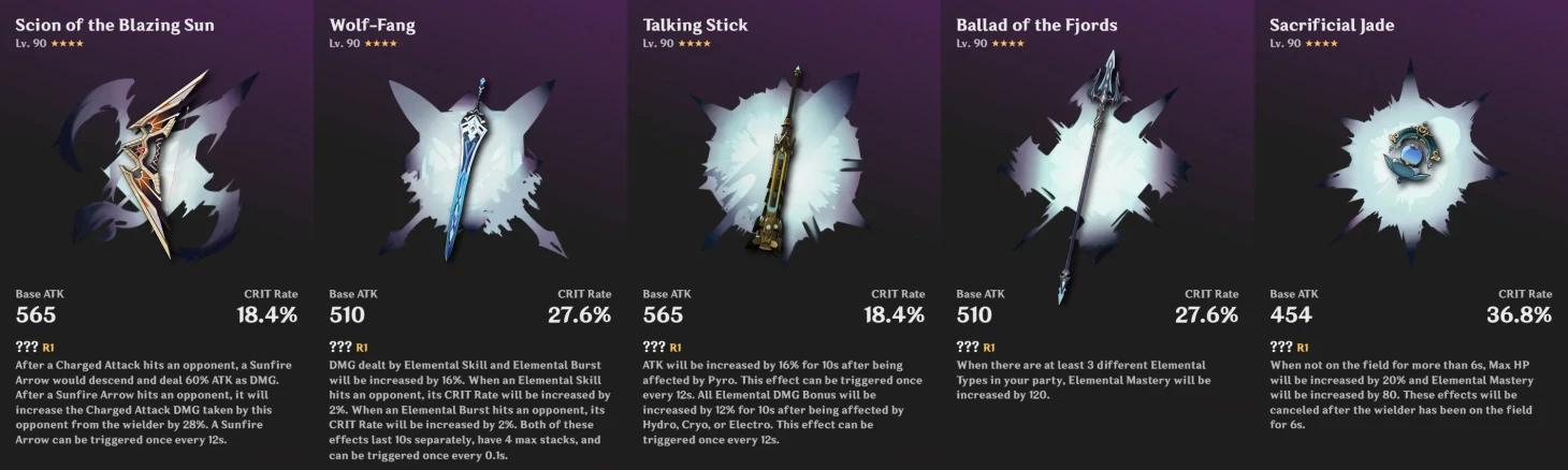 Хэйдзо, Странник, Нин Гуан, Кли – если нет других вариантов оружия, но в команде обязательно должен быть саппорт на бафф силы атаки.