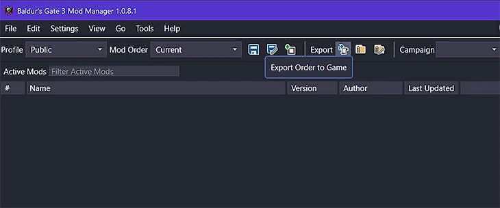 Справа от надписи Export есть кнопка Export Order to Game – она загружает порядок модов в игру.