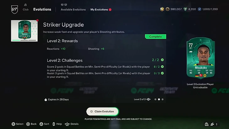 Задания уникальных карточек можно выполнять в течение года в разных режимах игры, но в основном это будут привычные Squad Battles и Division Rivals. Игроков с эволюцией нельзя продать или обменять в «Испытаниях подбора команды» (ИПК). Можно развивать несколько карточек, но улучшать их придется по очереди.