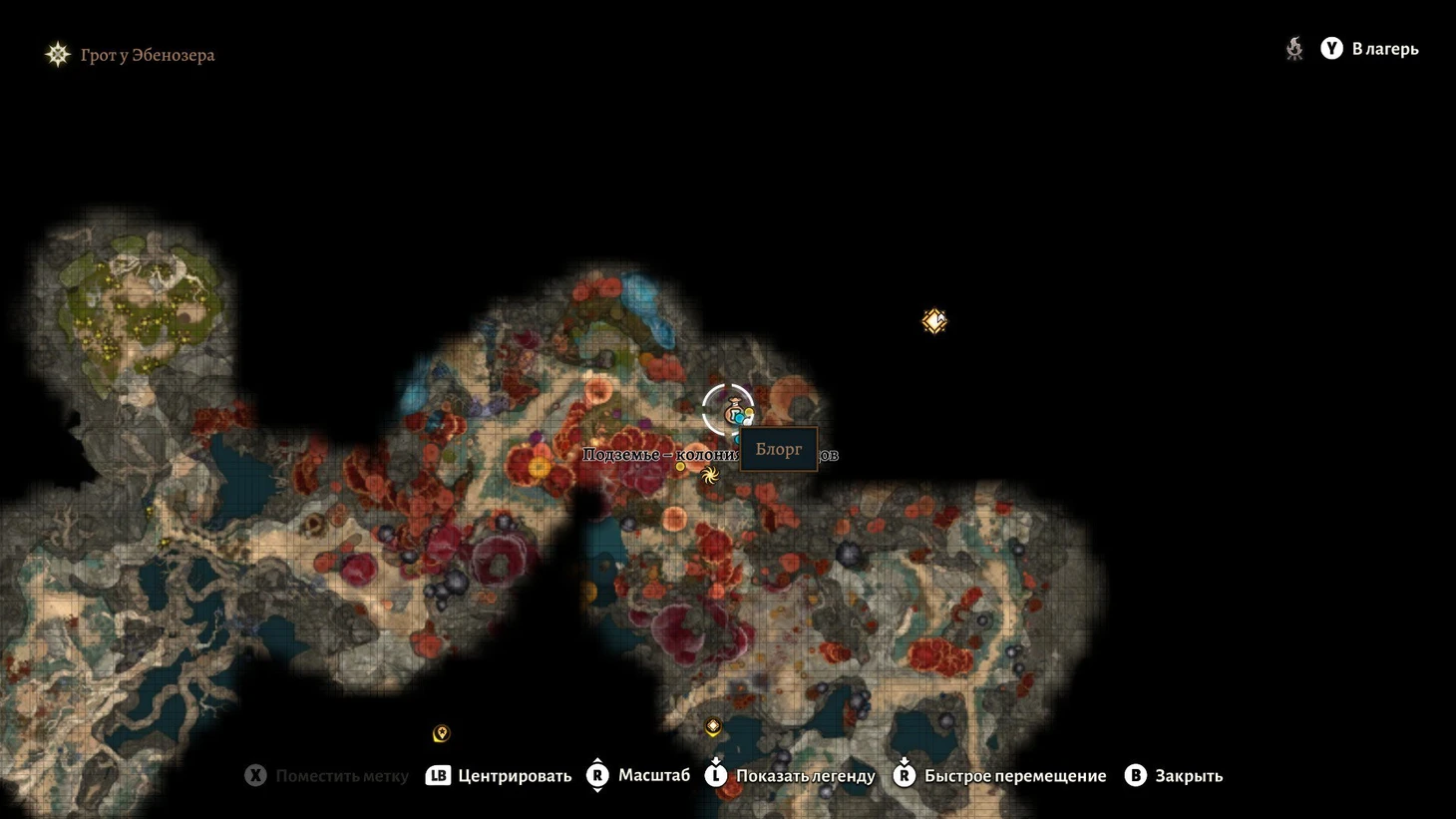 Ближе к финалу второго акта вас отправят в горы или Подземье. Идите в подземный мир и найдите на севере карты поселение миконидов.