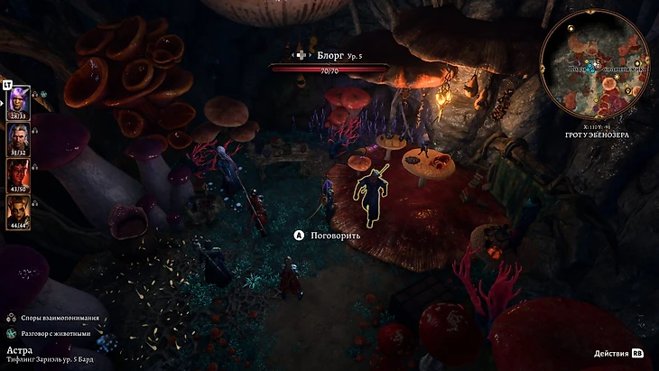 Один из участников – иллитид Омелум. Именно его раса заразила героев, поэтому Омелум разбирается в вопросе. Так начнется квест «Помочь Омелуму исследовать паразита». Для выполнения нужны особые грибы.