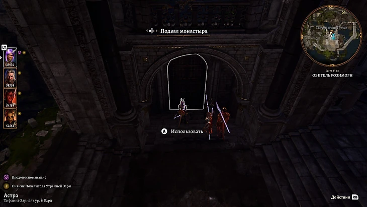 Главный вход запечатан магией, поэтому заберитесь в здание через окно и перебейте пьяных врагов. Преодолейте обрыв и найдите крыло монастыря со Стражем веры.