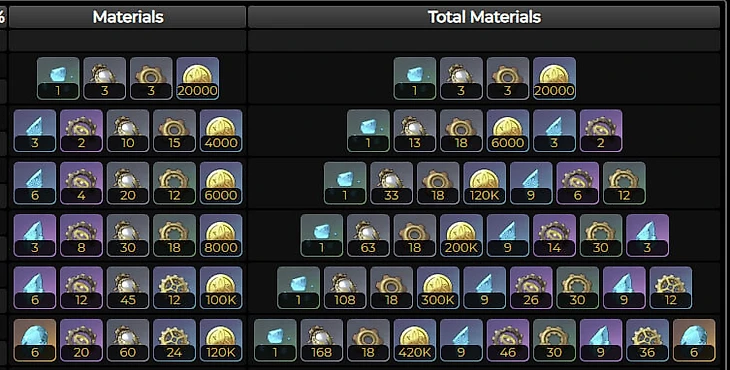 Для прокачки талантов понадобятся учения/указания/философия о «Порядке» (ср, сб, вс), шестерни, первозданный цветок оазиса с еженедельного босса Стража оазиса Апепа и корона прозрения. На один талант нужно: