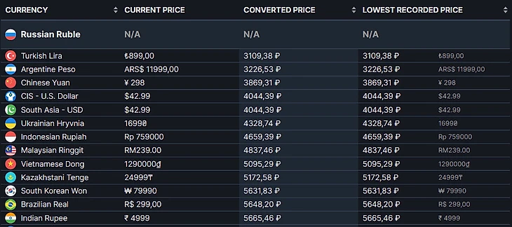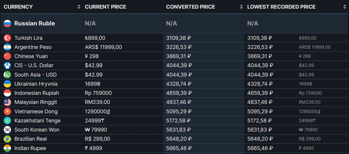 С российским регионом оформить предзаказ невозможно. Однако для тех, кто уже сменил на Турцию, Аргентину, Казахстан и другие страны, предзаказ открыт – игра стоит 899 лир, 11999 песо, 24999 тенге или 69,99 долларов. О том, как сменить регион в Стиме, можно узнать в отдельном гайде. Или же купить подарком из другого региона.
