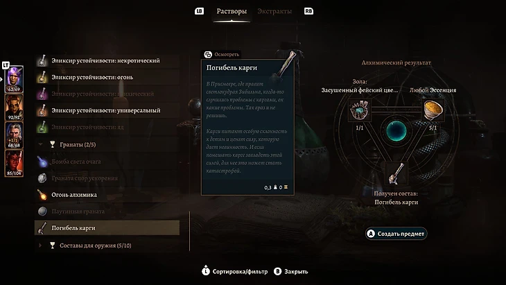 Перейдите в раздел «Алхимия» и создайте гранату «Погибель Карги».