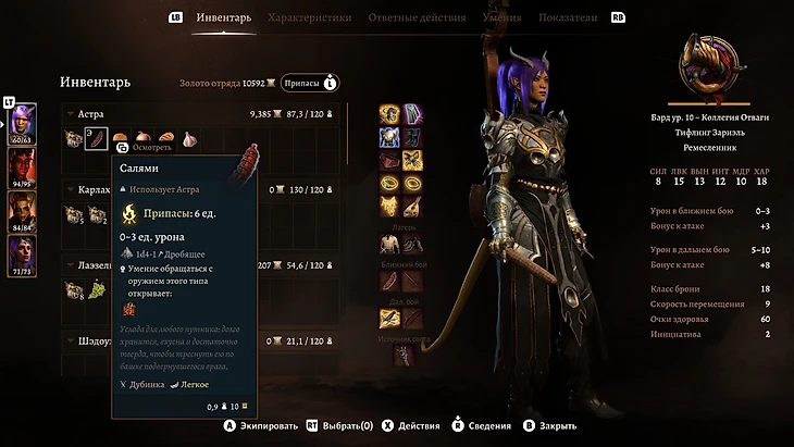 Это не шутка. В Baldur’s Gate 3 колбасу можно съесть на привале, но также она входит в категорию «Снаряжение». Салями наносит мало урона, зато враги точно будут в шоке.