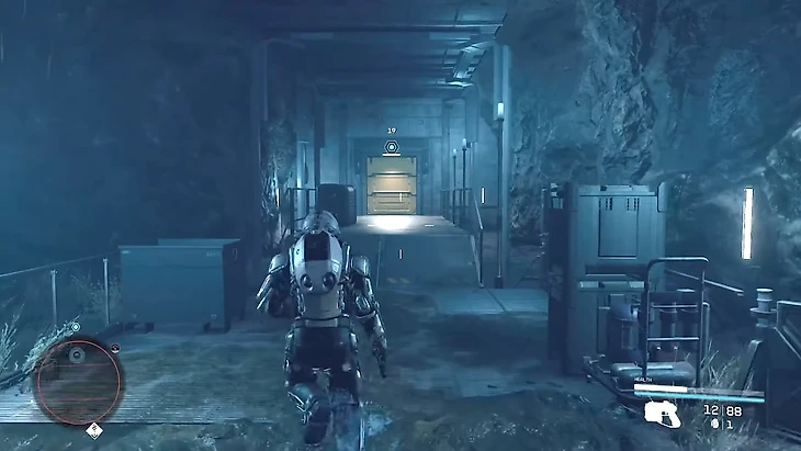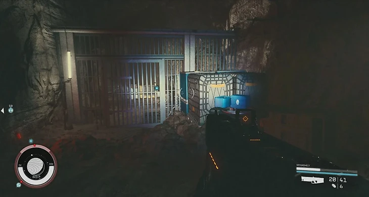Внутри базы двигайтесь вперед, убивая врагов, пока не упретесь в решетчатую дверь, которую можно либо взломать, либо перепрыгнуть, используя ящики справа.