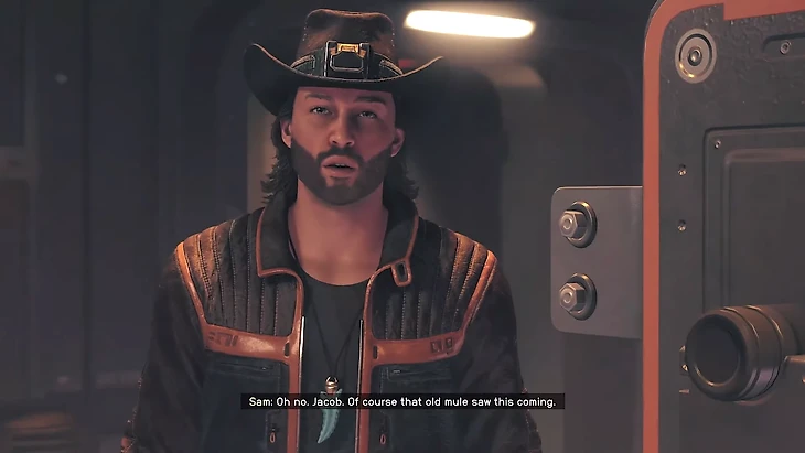 Сэм вместе с дочкой Корой (Cora) ждут в локации The Lodge на планете Jemison в комнате рядом со столом с артефактами. Он предложит отправиться вместе с ним в город Akila City. После начала миссии Сэм и Кора будут ждать на вашем корабле, пока вы не посетите город.