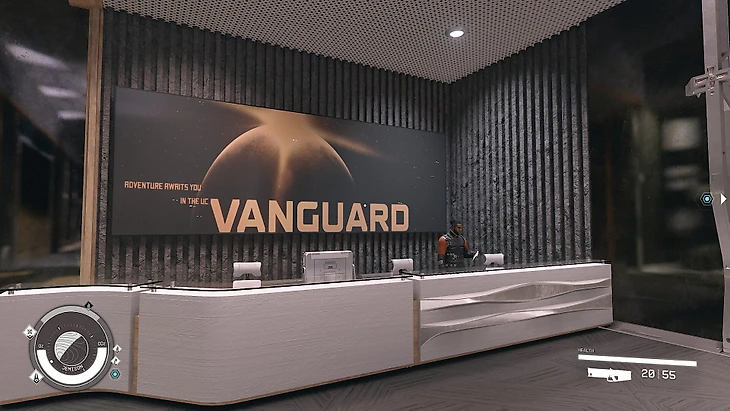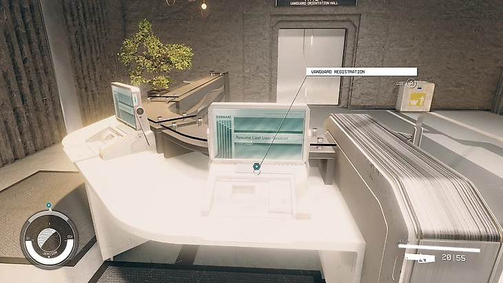 Слева у стойки стоит командир UC Джон Туалу, который вербует новобранцев. Пораспрашивайте его о работе в авангарде «Объединенных колоний» и зачем необходимо гражданство. Примите предложение Туалы и спуститесь на лифте вниз, где нужно взаимодействовать с компьютером и дать согласие.