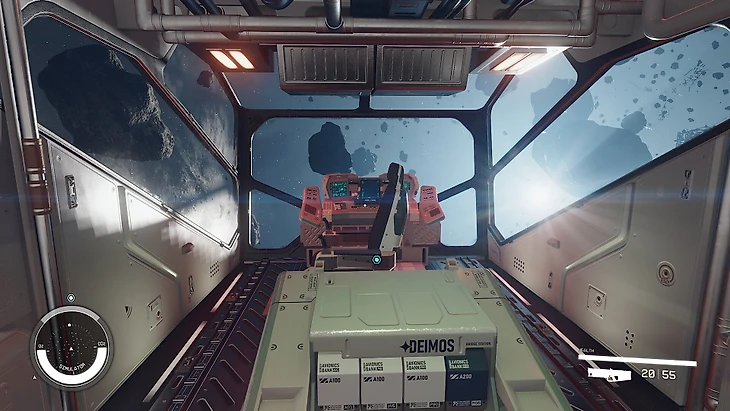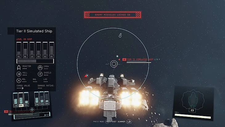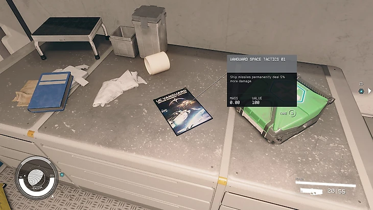 Еще до посадки в симулятор пройдите в комнату справа, где на столе лежит журнал навыков Vanguard Space Tactics. Он дает постоянный буст в 5% ракетного урона, которые сразу вам пригодятся! Теперь идите к симулятору: садитесь в кресло пилота и следуйте инструкциям.