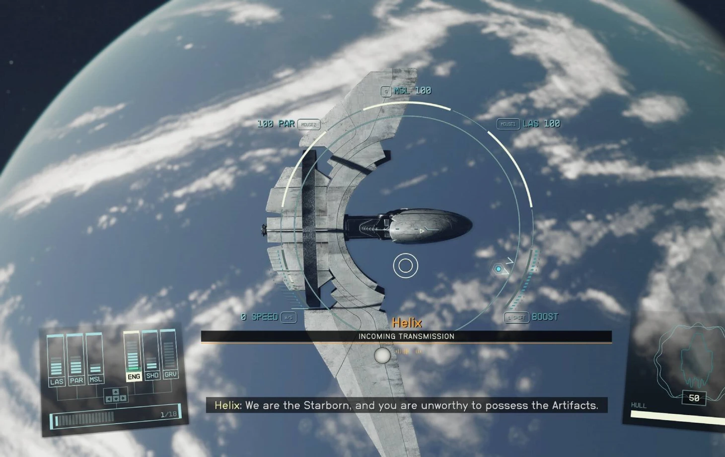 Герой ищет последние артефакты: один хранится в лаборатории рядом с Землей. Там выясняется, что люди изучали уникальную вещь и с ее помощью сделали гипердвигатели для космических путешествий. Увы, в процессе они уничтожили атмосферу родной планеты.