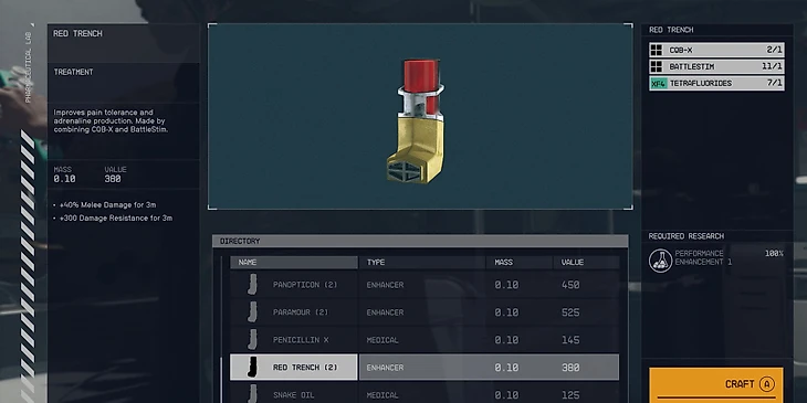 Прокачка этого навыка до максимального уровня разблокирует все рецепты алхимических зелий в Starfield, а также утраивает результат при успешном крафте.