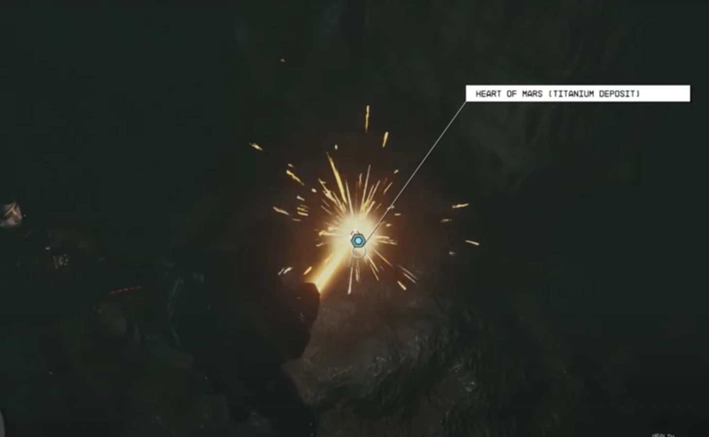 Через быстрые перемещения выберите на Марсе пункт назначения Пещера (Сave). Чуть пройдя в Пещеру, вы найдете на земле небольшой камень из титана. Разбейте его Резаком и получите Сердце Марса.