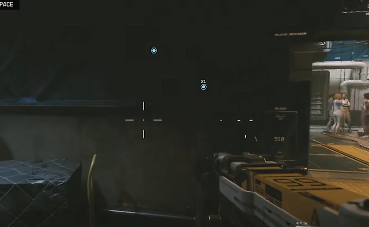 Развернитесь – вы увидите дверь под большим экраном с пиратским черепом. Заходите туда. Поверните направо и идите прямо, пока слева не появится проход в небольшое помещение. Повесьте там плакат.