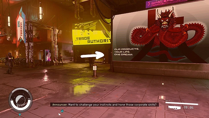 Перейдите в систему Волии и выберите планету Волии Альфа, на которой расположен Неон. От посадочной площадки идите вперед по длинному коридору и поднимитесь на лифте наверх. Сразу слева от входа можно заметить большую желтую вывеску магазина с ресурсами и прочими вещами.