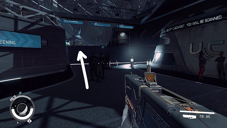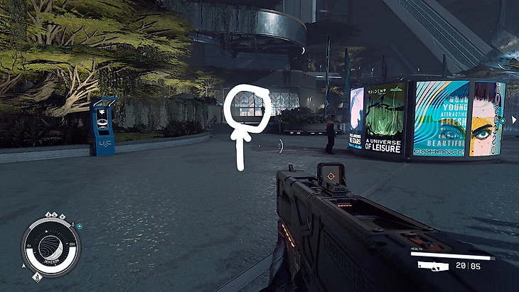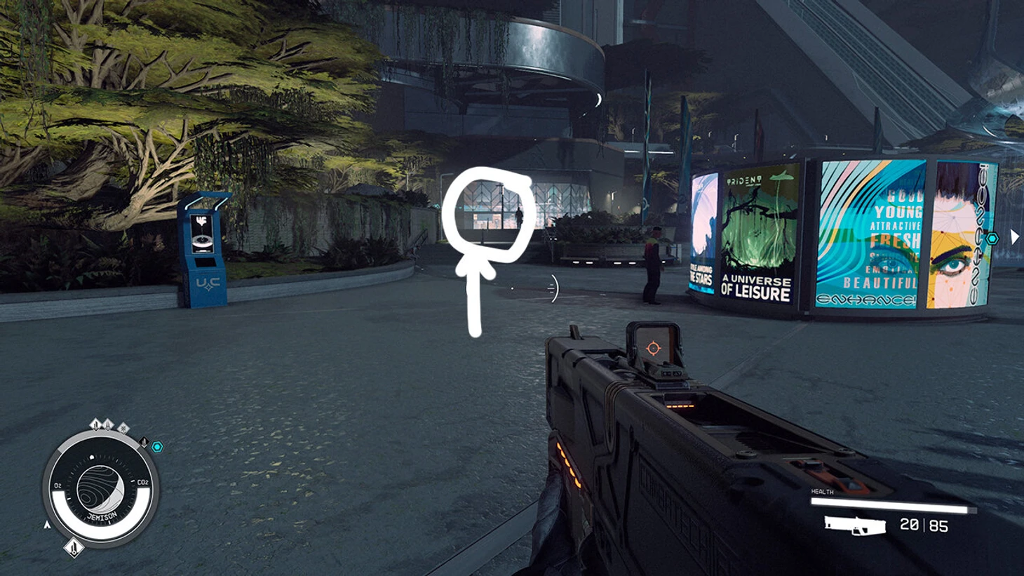 Перейдите в систему Альфа-Центавра и выберите планету Джемисон. Переместитесь на посадочную площадку Нью-Атлантиса, пройдите прямо до лестницы, поднимитесь – и вы увидите магазин.