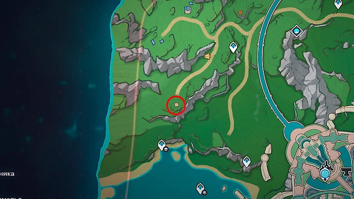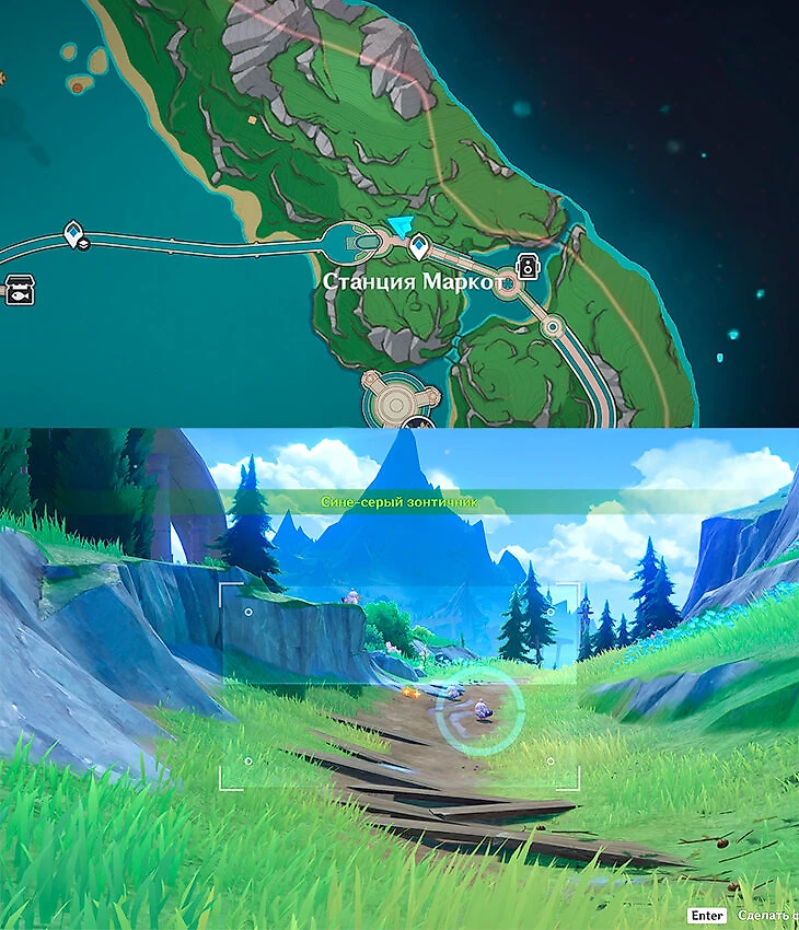 Во второй части нужно сфоткать наземные сооружения. Они отмечены квадратными значками на карте.