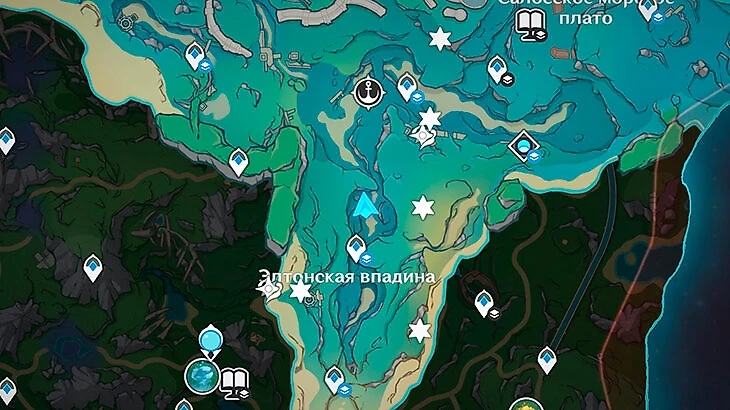 К подводным реликвиям относятся затонувшие корабли и останки крупных морских животных. Затонувшие корабли находятся в Элтонской впадине.