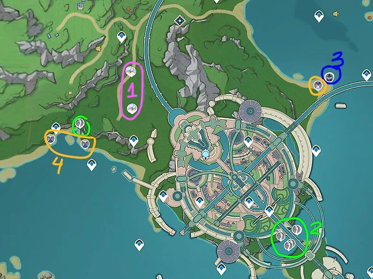 Возьмите в отряд Кирару или Саю, чтобы птицы не боялись и не улетали. Вокруг Фонтейна можно найти все 4 вида, при этом разный цвет означает разный тип для условия фотографии – в пруду с лебедями на юго-востоке Фонтейна можно по отдельности сделать фото белых и черных лебедей.