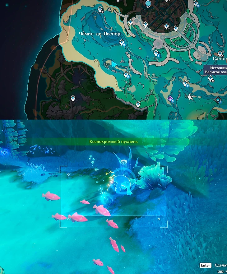 Для получения второй части награды нужно сфотографировать двух остальных инородов. Можно проплыть в любую сторону подальше и сделать фото пухленя и краба или же посетить места, отмеченные на скриншотах.