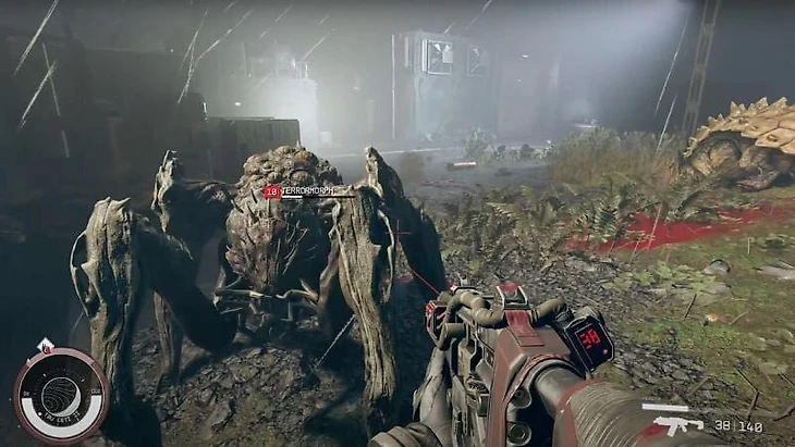 Поэтому я крадусь по заброшенной станции и постепенно включаю систему безопасности из автоматических турелей. Параллельно рядом рыскает огромное чудовище, которое знает о моем присутствии. Когда выключатели наконец активированы, я показываюсь террорморфу и веду его прямиком в ловушку! Под градом свинца тварь уже не кажется такой страшной и быстро погибает. Я беру нужные образцы и отдаю ученому.