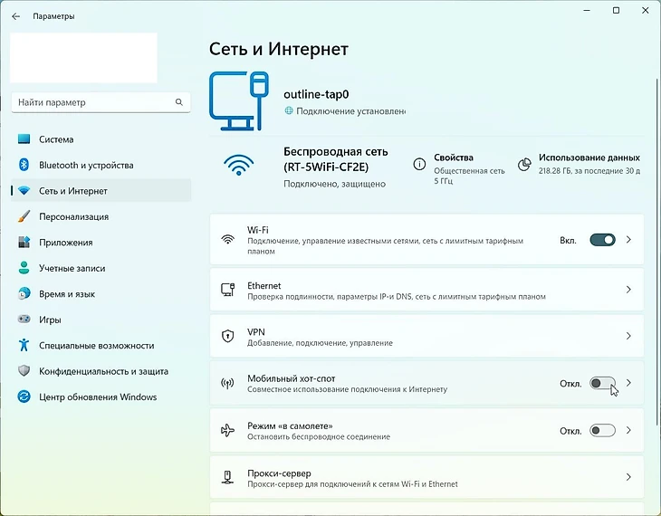 В Параметрах Windows найдите вкладку «Сеть и Интернет». Включаете «Мобильный хот-спот»;