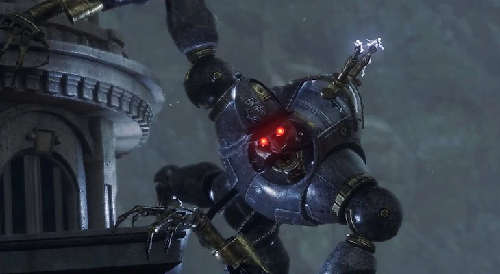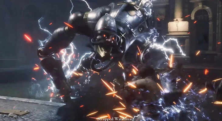 Если Scrapped Watchman медленно поднимает правую руку – готовьтесь уворачиваться или блокировать атаку. Он сделает рывок в вашу сторону и нанесет сокрушительный удар справа налево. Бракованный Смотритель часто повторяет серии ударов первой фазы, однако теперь надо быть еще осторожнее: действует он быстрее, а постоянные молнии не дадут вам покоя.