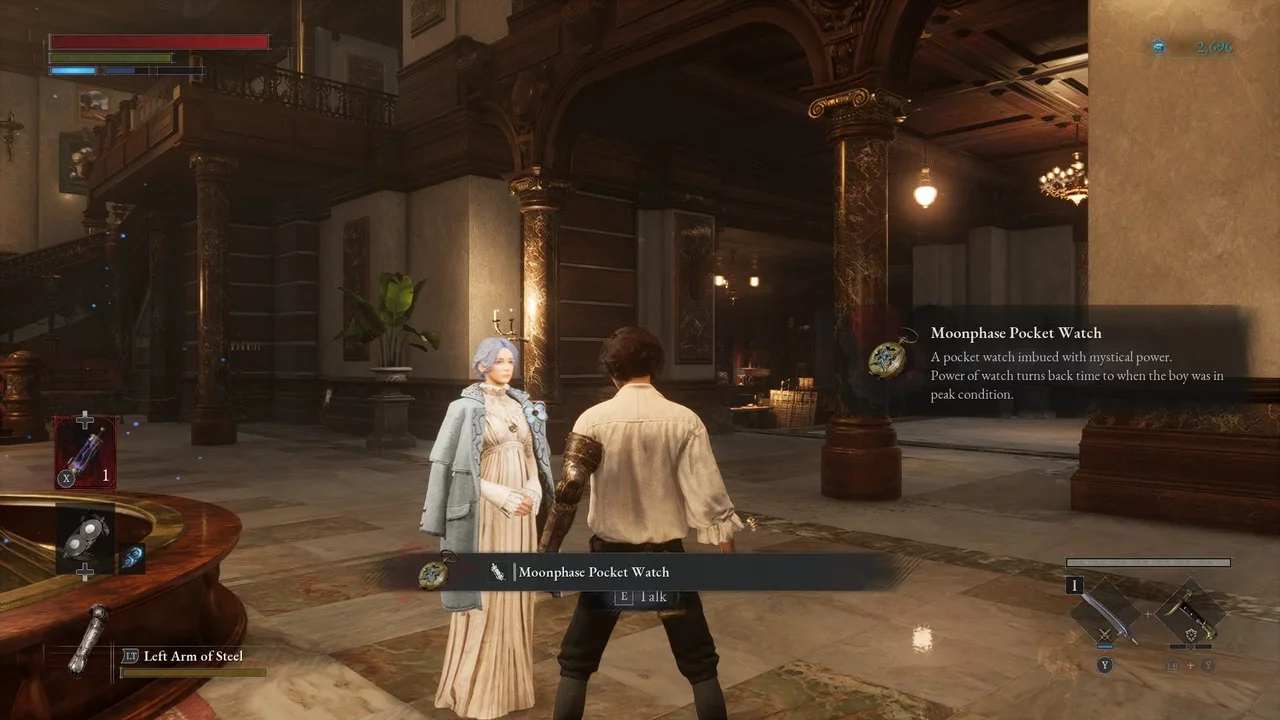 При первой встрече с Софией она выдаст вам Часы фаз луны. С их помощью вы сможете в любой момент вернуться к ближайшему Звездочету или в обратно в хаб (Hotel Krat). Как и в случае с Stargazer, быстрое перемещение через Moonphase Pocket Watch возродит всех мобов на локации.