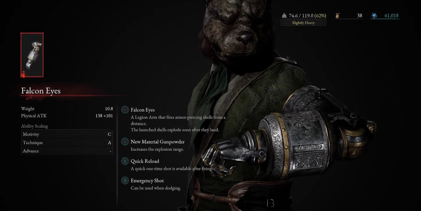 Соколиный глаз выстреливает бронебойными снарядами, которые взрываются после приземления. Эту руку Легиона также можно создать у ремесленного станка в Отеле «Крат». У Соколиного глаза есть три уровня прокачки – Новый порох (увеличивает радиус взрыва), Быстрая перезарядка (позволяет сделать одиночный выстрел сразу после основного залпа) и Выстрел для чрезвычайных ситуаций (позволяет выстрелить при уклонении).